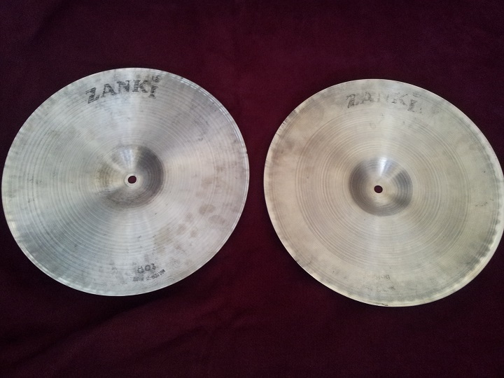 For sale, I have a set of Zanki (Zanchi) hi hats cymbals in very nice weights. These 14" hi hats appear to be Zanki professional line, which are rotocast. In keeping with the true signs of rotocasting, the bell is much thicker than the bow, being that the bell is cast and not punched (stretched) into shape. The bell sounds awesome when struck. These are beautiful cymbals from Fiorello Zanchi, the man whom Carlo Biasei (UFIP) referred to as "the man with the golden hands." (Pinksterboer, The Cymbal Book, p.172)