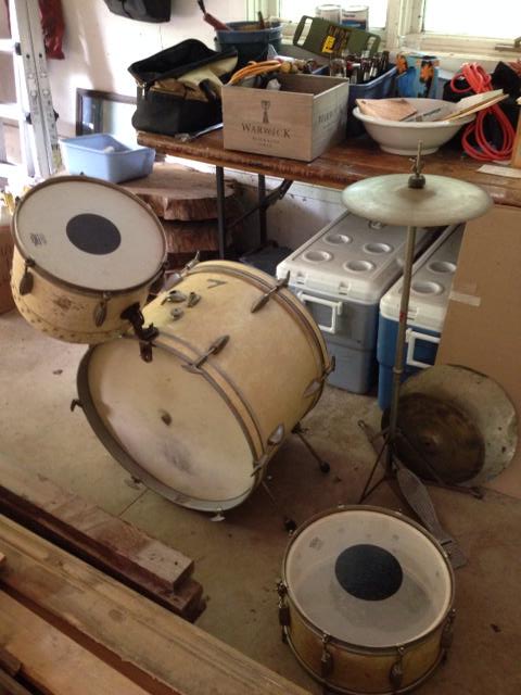 Hi everyone. I have a friend who is wondering about his dad's old Leedy/Ludwig kit (see photos). He asked me what he's got and if it's worth restoring, and since I don't know a lot about vintage drums, I'm putting it out to you. I don't know what kind of shape the bearing edges are in and all of that fun stuff. All I know is that it dates from the early 50s, but that's about it. Thoughts? Thanks in advance!