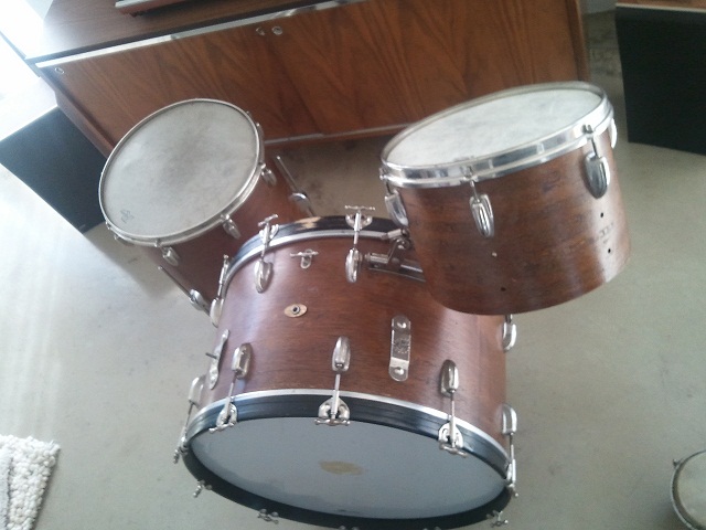 I recently picked up a slingerland Radio King as a project but i think it is too much for me to handle. The wrap has been stripped by the previous owner and the tom and floor tom are missing the lower hoops and lugs. 24" bass, 13" tom, 16" floor tom. it came with the original wood block and cow bells. I anyone on here looking for a project?