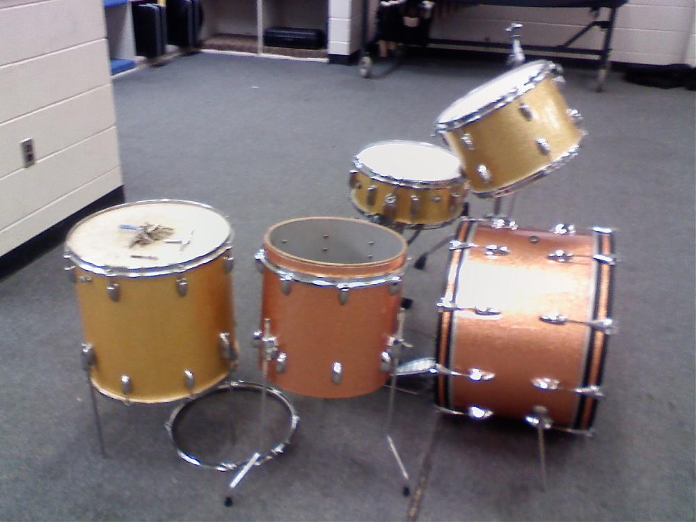 These 2 toms are part of the same kit. The bass was destroyed in a home invasion in 2001. I bought the 1961 bass in an effort to finish out the kit but didn't do a good job of matching the wrap color so selling seperate.