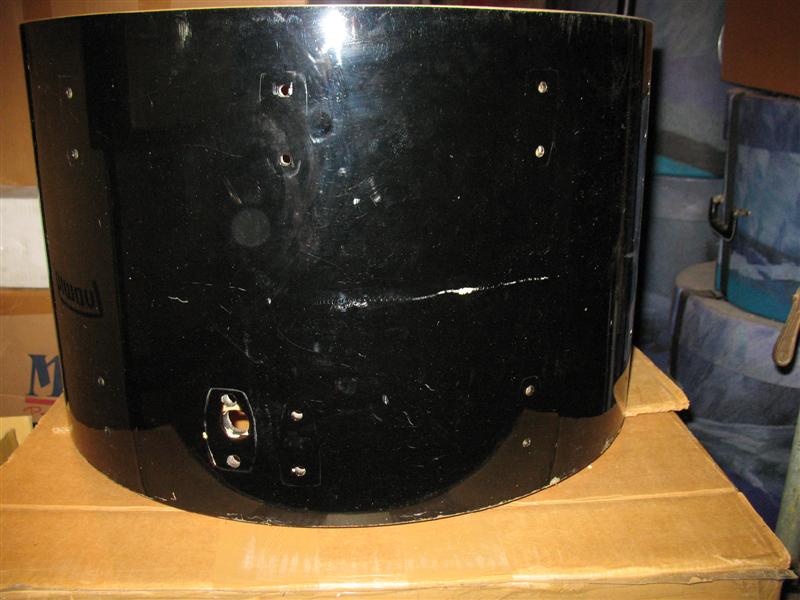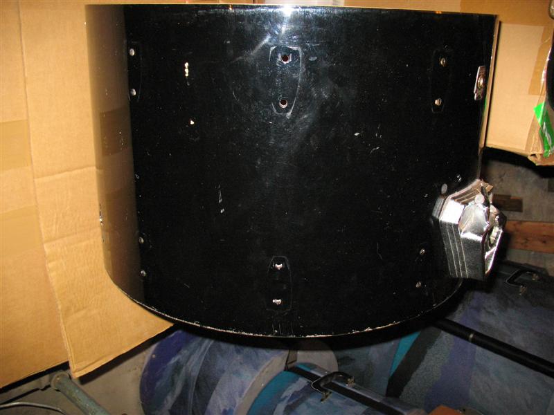 Ludwig 14 x 22 6 ply in Black Sable. Monroe badge. Lug holes are drilled for Large Classic lugs. Modular tom mount wingnut is broke. I may be able to get it out.
