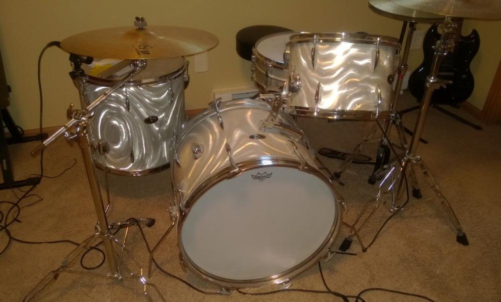 I just wanted to post a quick pic of the progress on my late brother's Apollo drum set -- and more importantly -- say Thank you to the amazing folks on this forum for the support and spare parts! 6 more 2 3/4" t-rods for the floor tom and it will be complete. My big brother would be smiling :).