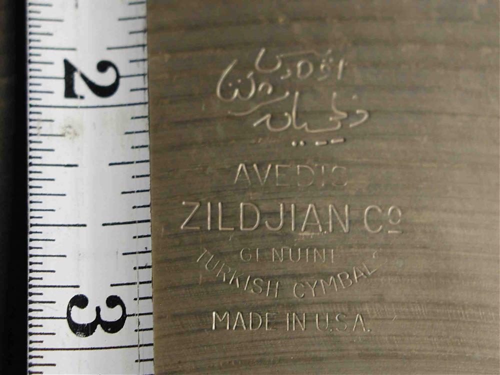 Through the contributions of members (esp. Drumaholic) I learned some time ago that the lack of "the 3 dots" indicated late 50's. Also the stamp is noticeably smaller that the one on my 18" crash purchased some years later. (It HAS the dots.)