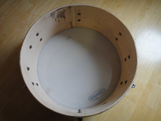 Interior has a little bit of dark glue visible, but shell is in great shape. Bearing edges are good. Strainer works fine. Comes with 12 strand snares.