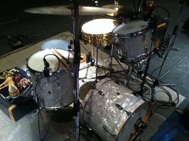 here's a pic of my luddy's. the bass drum is a 1960 that i bought for $5 about 25 years ago. bought the stray, very beat up toms just in time for a tour and had them all rewrapped to match. the snare is a replated black beauty that i'll post pics of separately.