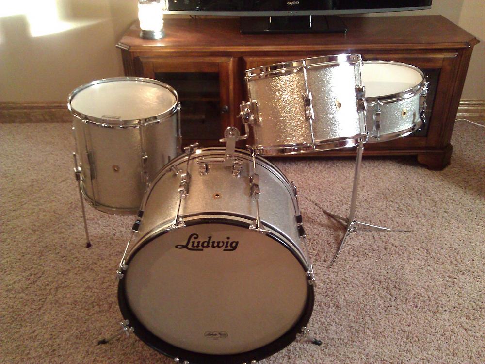 Finally at home for a bit, and wanting to move some Ludwig kits as I have more coming. Have a few super classics, clubdates, and a modified champagne sparkle downbeat (1965) to a hollywood (correct 13 and post 1967). Also a no serial B/O Pattern D red, white and blue vista kit (hollywood). Have a couple pitted 70's supras, as well as a 66 model ALL THREE SOLD. Steve Jordan signiture Yamaha, black galaxy acro, Big R 76 COB....misc. Have too much to list as well as take photo's and post. If there is ANYTHING you are needing as far as 60's or 70's Ludwig, in either nickel or chrome, hardware, stands, even 60's zildjian's, please don't hesitate to email and ask...you never know!