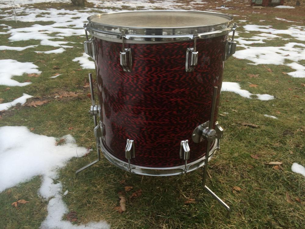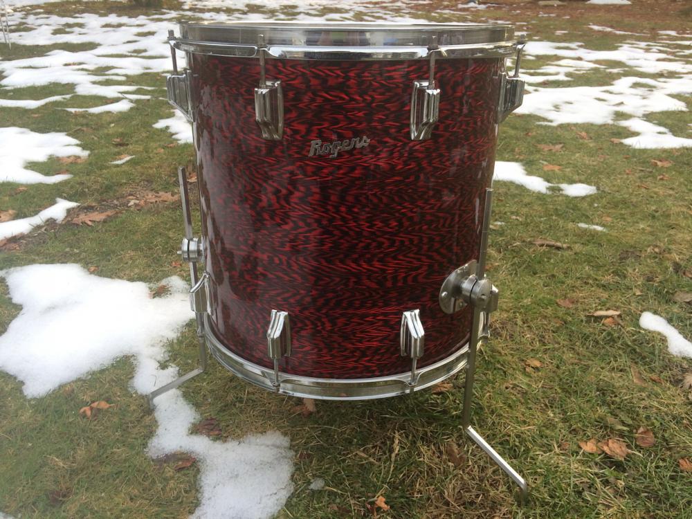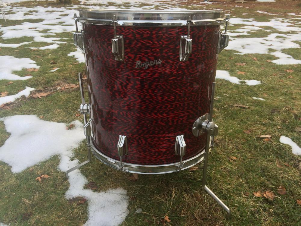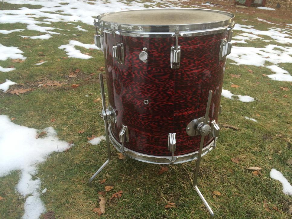 Vintage 60's Rogers 'Holiday' model 16" x 16" floor tom in original Red Onyx wrap! Drum is 100% original with no extra holes or mods, wrap and chrome are clean! no cracks in the wrap or rust/pitting on the chrome, original legs, clean interior w paper label. not enough good things i can say about the drum. it sounds amazing and is in awesome original condition!