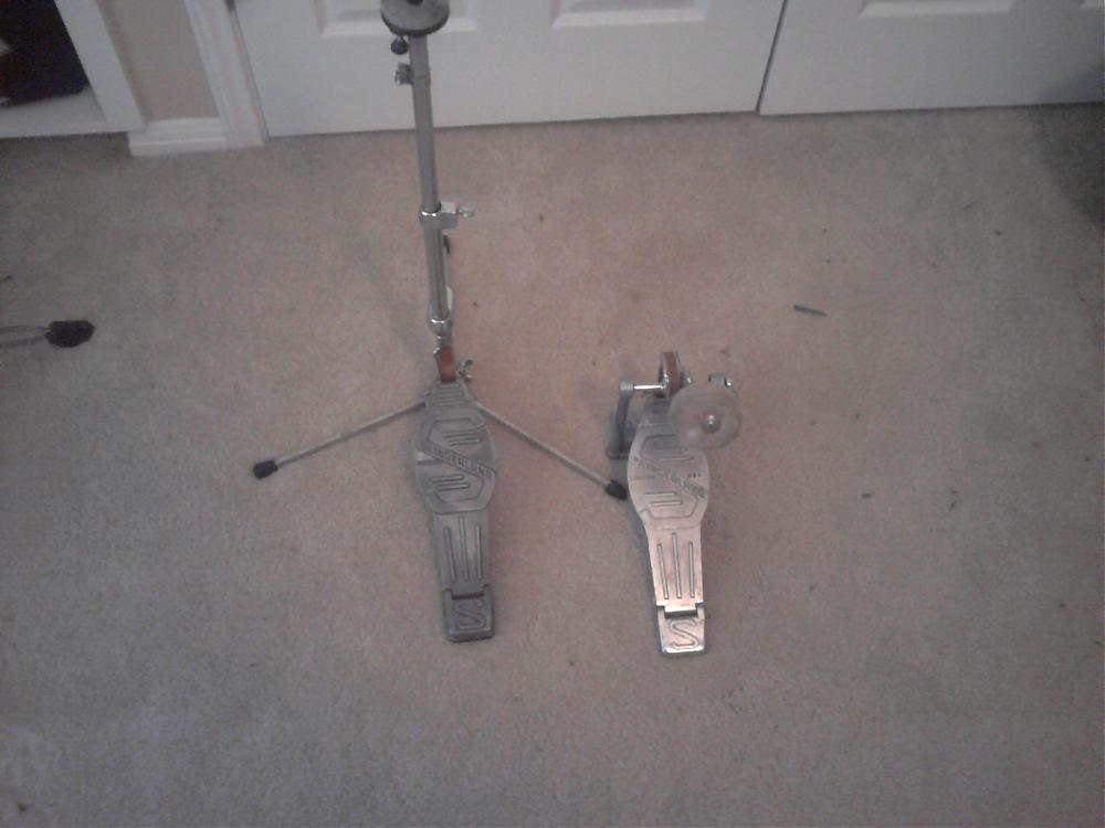 No. 804 Direct Pull flush base hi-hat stand and Tempo King bass pedal. Hi-hat is missing original clutch, but otherwise both are in good working condition. Kick pedal has a lambs wool beater. $100 shipped for the pair.