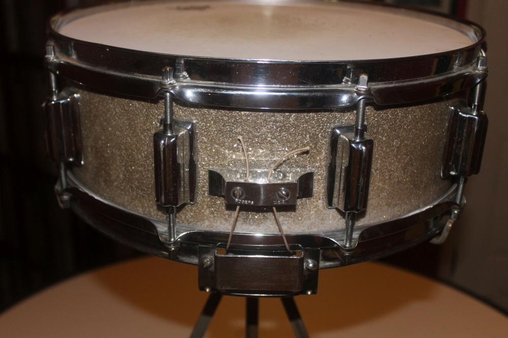 Here's an immaculate drum, worthy of any collection. Originally Silver Sparkle, it has now darkened to a nice, even Gingerale color. This really is a tremendously well-preserved drum, with all original parts, and everything in perfect working condition. This drum is suitable as a Player, but is in mint condition. $2200 shipped, PayPal only.