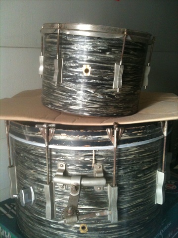 theses are a treasure found from a estate the wrap is actually in very good condition the hardware dirty but minimal pitting, rare color and rare nickle hardware, but it is what it is any takers it needs some elbow grease and a few parts and with floor tom and restored ill bet done the road ill kick myself for selling ...hard to find size also 14x22 and 9 x13 the same as a super classic but some say in club date they sound different in a good way still mahogany aged wood, this here's a players kit or restore and keep for investment (the way oyster black pearl no holes is getting harder and harder to find its a rare beast indeed and getting rarer) too big for my use i have a smaller version accepting offers look lets be real i paid for this i did not find it in a alley (wish i did) 950 shipped obo possible trades for cymbals and pink champagne jazz fest