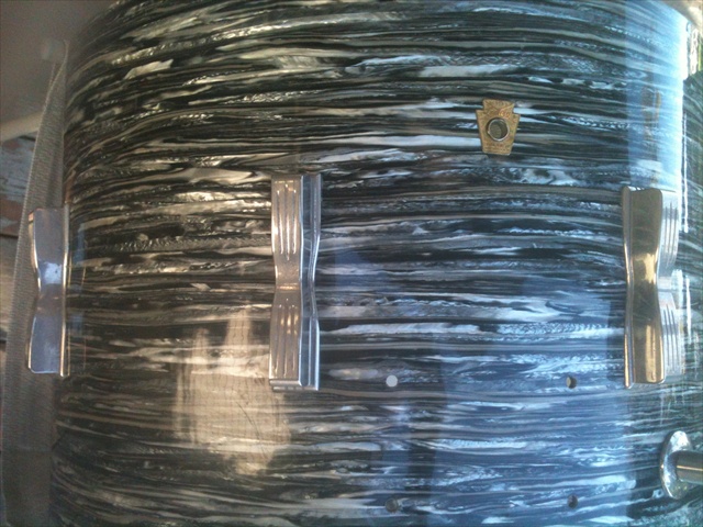 my sweet 2 drum club dates 12x8 14x20 the hang has 1 nob hoop, 1 nos hoop, bd has one hoop no inlay but drum's are immaculate, so pristine is the wrap and the hardware, I might have most of t-rods and claws, it comes with the old skin, still good to play, It still has its original tom mount I took it off for buffing...