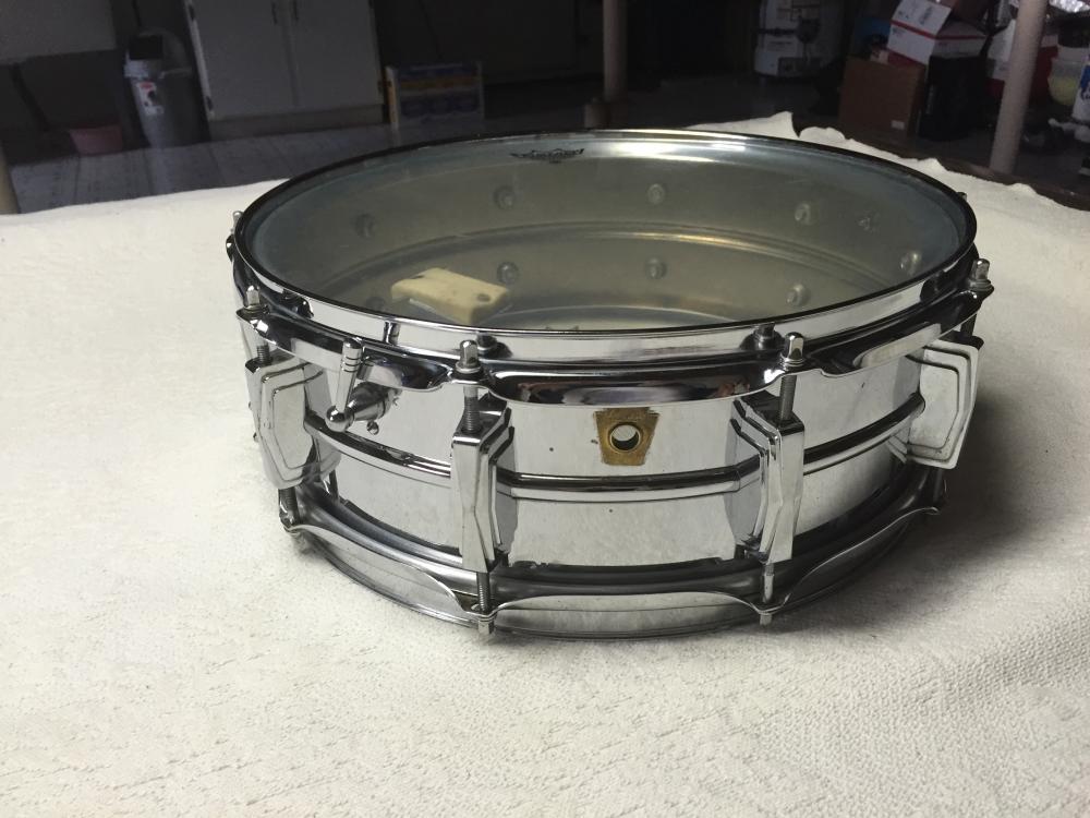 1967 Ludwig Supraphonic 5x14 Chrome ludalloy in very good condition, some light pitting as shown. Internal bat muffler, everything is original. New heads. Classic snare from Ludwig. Serial # 478000