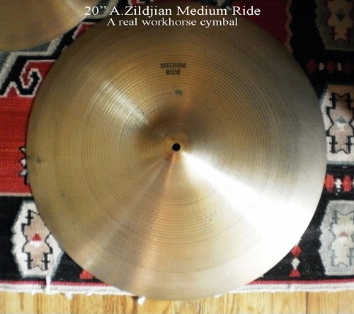 Got a sweet pie for sale! Anybody who has been knocking around for awhile will tell you, these vintage 20" medium ride A's are workhorse ride cymbals. They are versatile and completely useable in -any- playing situation. Pro grade Zildjian brass. Don't just take my word for it, do a little homework.