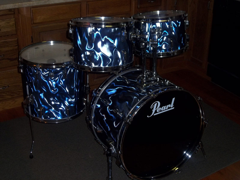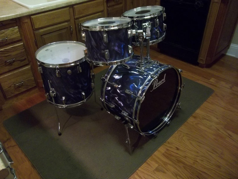 For Sale is a mid-70s Pearl Wood-Fiberglass set rewrapped in Midnight Blue Satin. 14x22 BD, 15x16 FT, 9x13 & 8x12 Toms. The only hardware included are 2 - 80s Pearl 7/8" tom arms and 3 - Generic FT legs. Heads are used but usable. Any reasonable offer considered -- I don't have a lot invested.