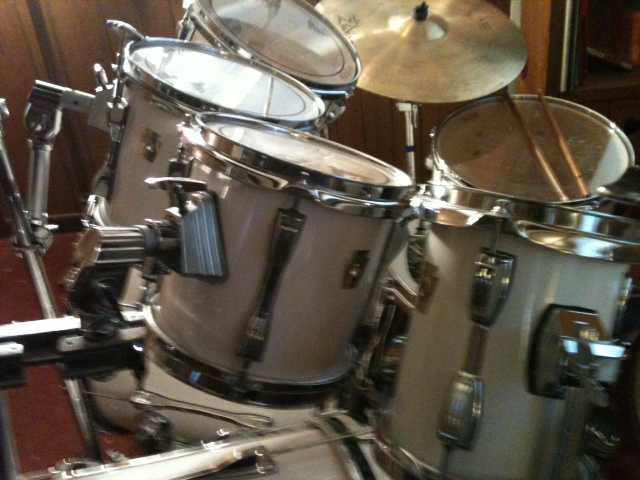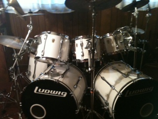 Hi! I have moved on to a new electric kit, so I'm getting ready of one of my main kits - This is a high-end Ludwig Superclassic - long lug - like new condition - 8pc, all maple. This is a shell pack and stands only - Sizes are 2x 22" kicks, custom ordered 6", 8", 10", 12", 16" floor, and I'll throw in a cheap snare because I sold off the good snare. I think it's like five stands and a high-hat stand. This kit is lacquered white, this is not a wrap. It is also one of the highest professional grades of drums that they make. New list was like $4300. My loss, your gain.