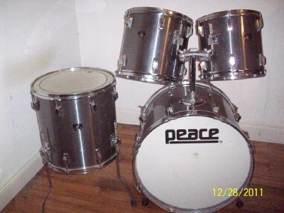 Would like to get $300.00 + shipping.Shells are solid with The inside Zola coating.Sizes are 16x22, 11x12, 12x13, 16x16.The wrap has scrapes and some scratches but still looks good. Color is Royal Pewter i believe, If anyone knows for sure let me know.Great Gigging kit with Omni-Sphere Tom Mount.