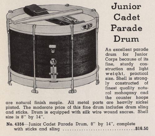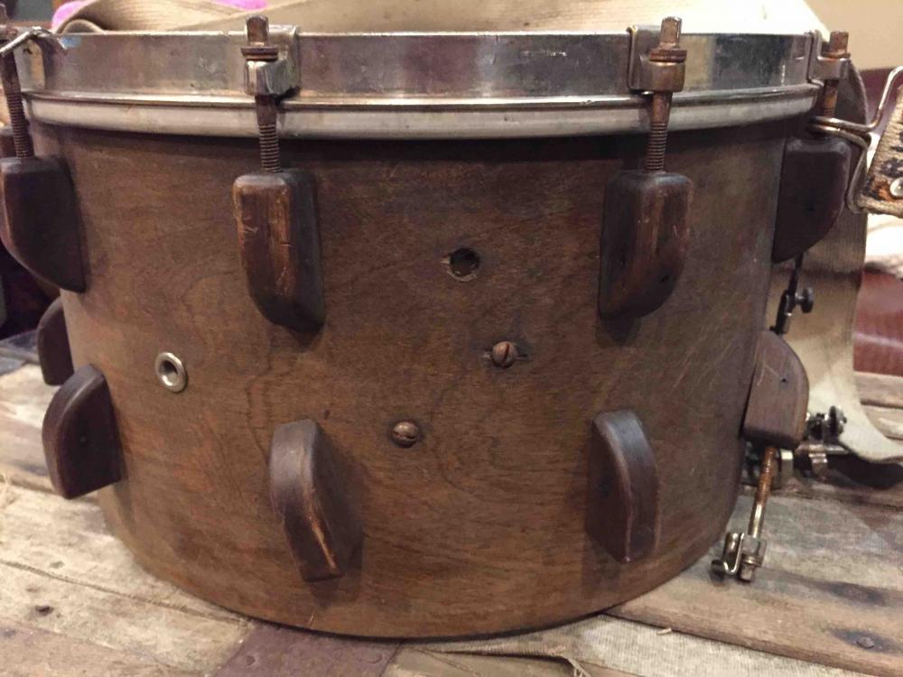 The 8" depth was too shallow for any Ludwig marching/parade drums of that era. There are no instances of an 8"x14" snare in the 20's-30's catalogs, however in the 30's you start to see 7"x14" and 8"x15" shells.
