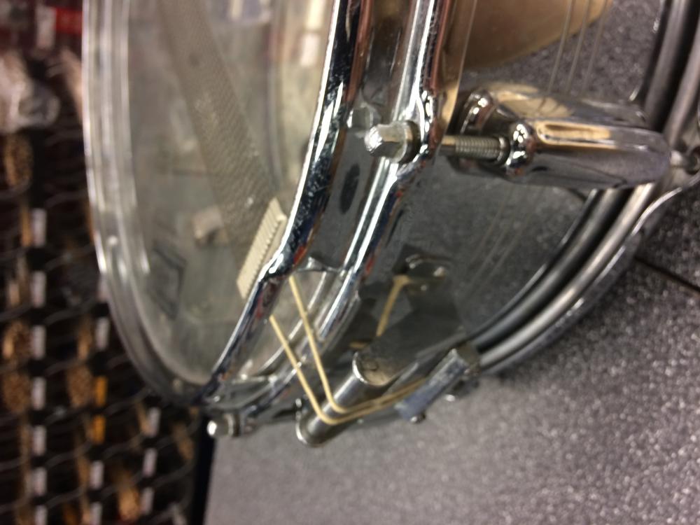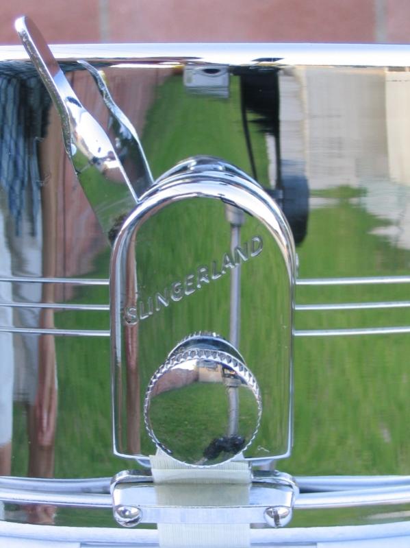 It's the Gene Krupa Sound King snare drum! They were made by the 1000's and were usually the standard snare drum with the majority of cataloged kits. The "snare extension" you are referring to was always on the drum. It's a hold-over from Leedy snare drums. Slingerland liked it and used it on the GK snare drum and also the Artist wood-shell snare drum. The snare wires used, up to around 1968, were an odd arrangement, where the butt end extended over the bearing edge, and many times a real hassle! Rather than explain, I'll post some pictures. By sometime in 1968, the Zoomatic was changed to include a wide clamping bar so Slingerland could install normal length wires with filament tape strips at each end. A much better setup!