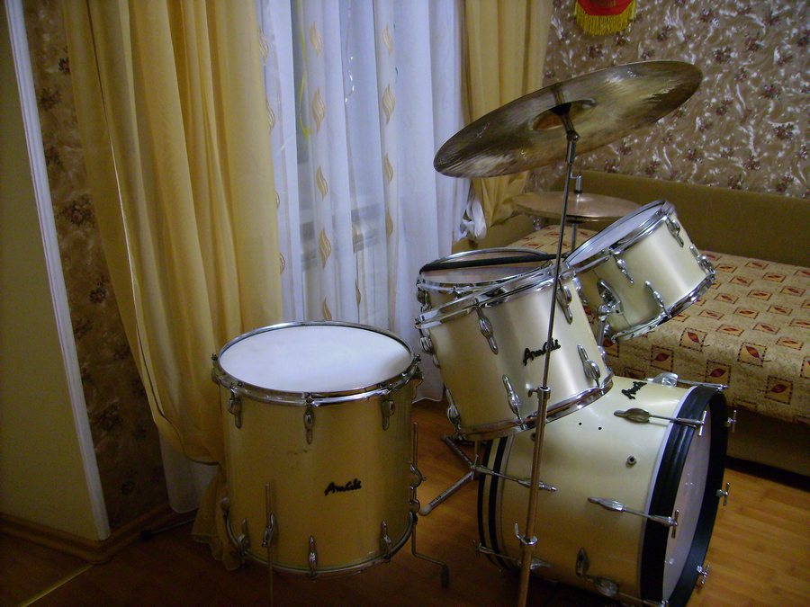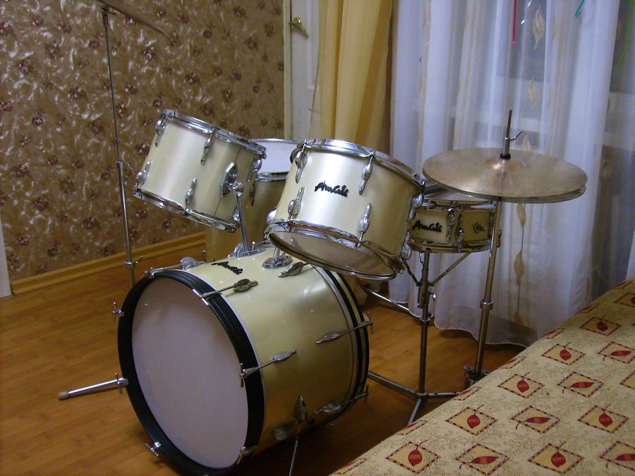 Something I did not manage to upload photos last time.The original was five drums, three plates and three plastika.Ostalnoy plastic was American proizvedeniya.Otsutstvovalo one leg of a large drum, and one leg was deformed. All the racks were from other producers of drums. There were no four mutes on the big drum and volumes.It was a transitional model from old amati to super-amati. The hardware was still from the old model and the drum cadre was thick-walled.