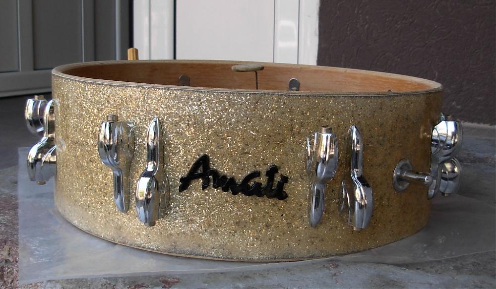 Another Amati 14x4" snare made in former Czechoslovakia.Someone messed with snare beds and I have only bottom hoop original,but I will find top hoop in time