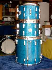 Radio King bass drums and tom-toms were made from mahogany, with maple reinforcement hoops. These drums are known for their "thuddy" sound; very warm, with quick decay.