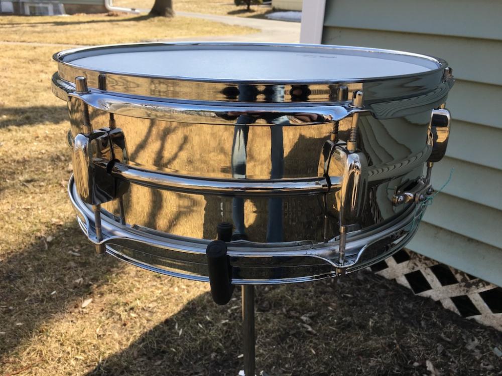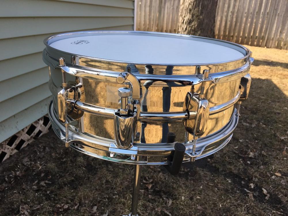I recently purchased this snare for the NOB Leedy single flange hoops it had on it. Upon arrival I am baffled as to what brand the shell is. Someone changed out the throw off before, but it is a single piece NOB beaded shell. I put some triple flange hoops on the thing and it sounds awesome.