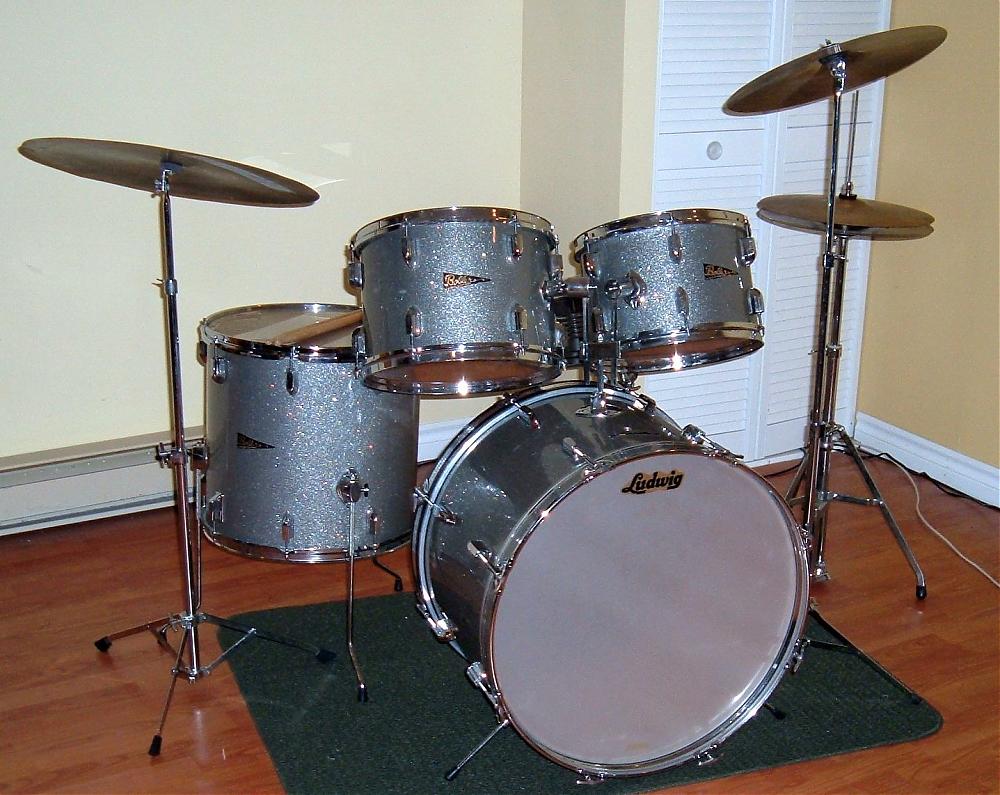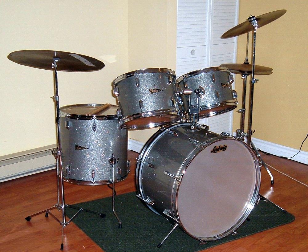 Picked up this kit a few weeks ago, extremely clean and great sounding. 22", 16" 12" 13", original silver sparkle wrap. Must be a late 60's or early 70's Tama or Pearl fabrication.