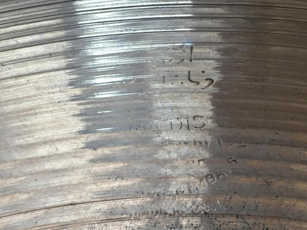 I mostly struck out, but at one shop I came across a set of three cymbals being sold together at a very low price. At first (based on the price) I thought they were just ZBTs that had been polished and the ink rubbed off. So I bought them, brought them home, and didn't look at them again until last night.