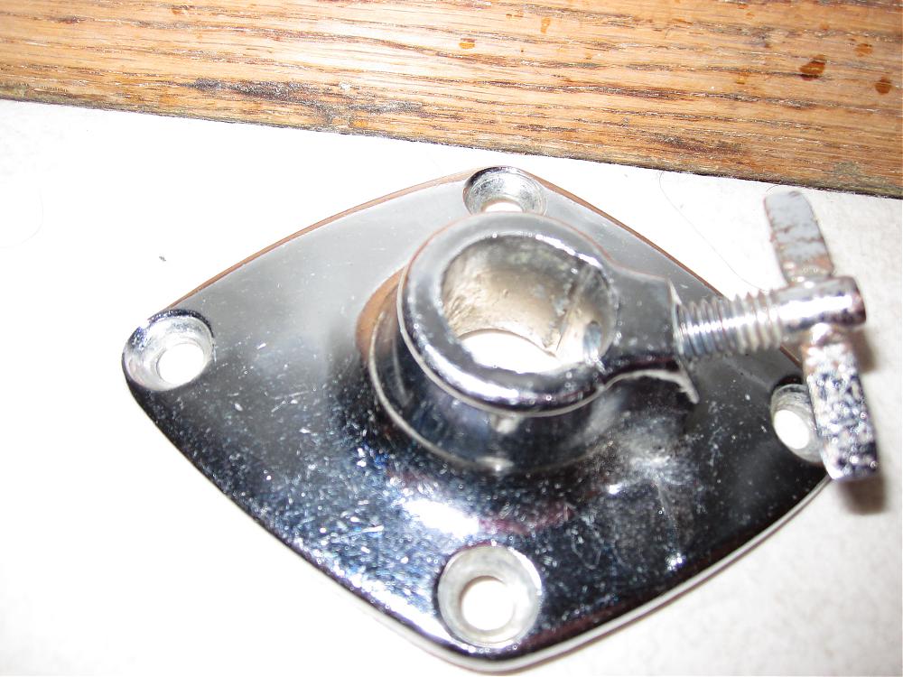 This is the tom mount for my Pearl Bass Drum. The Wing screw, while it does work, is in very very poor shape. Does anyone have a nice wing screw that fits this threading for sale? Doesnt have to be original, just something that looks ok.