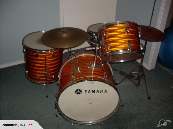 I would put those late sixties early 70's ,yamaha did transition from luan and blended shells to birch at some point I believe.Here in the u.s. they were selling two lines by 1976/77 one made of falkatta,the other birch which were professional drums that turned into the recording custom.In the u.s. MIJ stencil kits are going for 150.00 350.00 depending on condition,I see the yamahas as better made kits,but 400.00 to 700.00 I think is more accurate on what they would bring at best IMO in this economy.That being said I hear that they sound good,and are sturdy and playable by modern standards,and they have some great wraps with a great vibe.