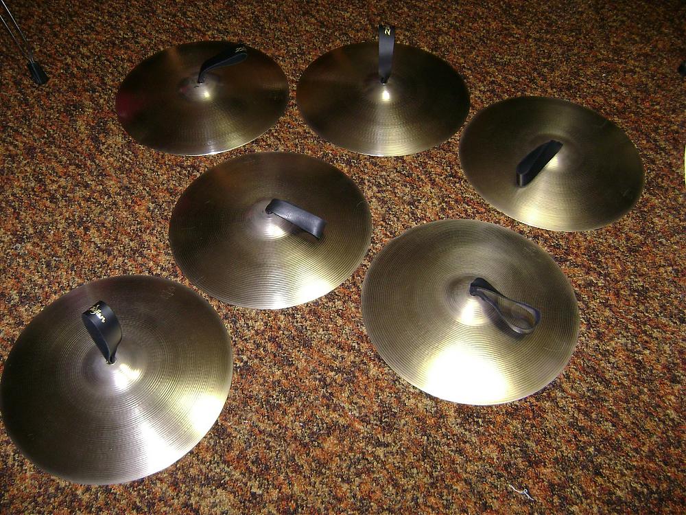 Once we got the cymbals cleaned and then polished with Zildjian paste cymbal polish, it's been hard keeping them shiny. These are 16 inch A Zildjian. Can't tell if they're Stadiums or something else. Probably early 2000's....
