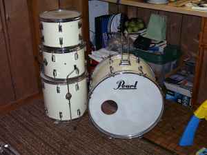 The second picture is of a Pearl Student Kit made in the Taiwanese CB700 factory and generally called "Challenger" or "Thunder King". 9 ply luan, thru the shell spurs, thinner Rogers-style tom brackets. Aside from the Pearl badge, they're identical to the CB-700, Maxwin, Revere, and Whitehall kits offered towards the end of the 1970's. $200 would be a decent price if the kit was in excellent condition, but I'm sure you know as well as I that luan wood isn't as forgiving as maple or birch to years of abuse, usually living for decades in heat and with the reso heads and hoops removed. These are like the Pearl Forum or Tama Swingstar of the 1970's.