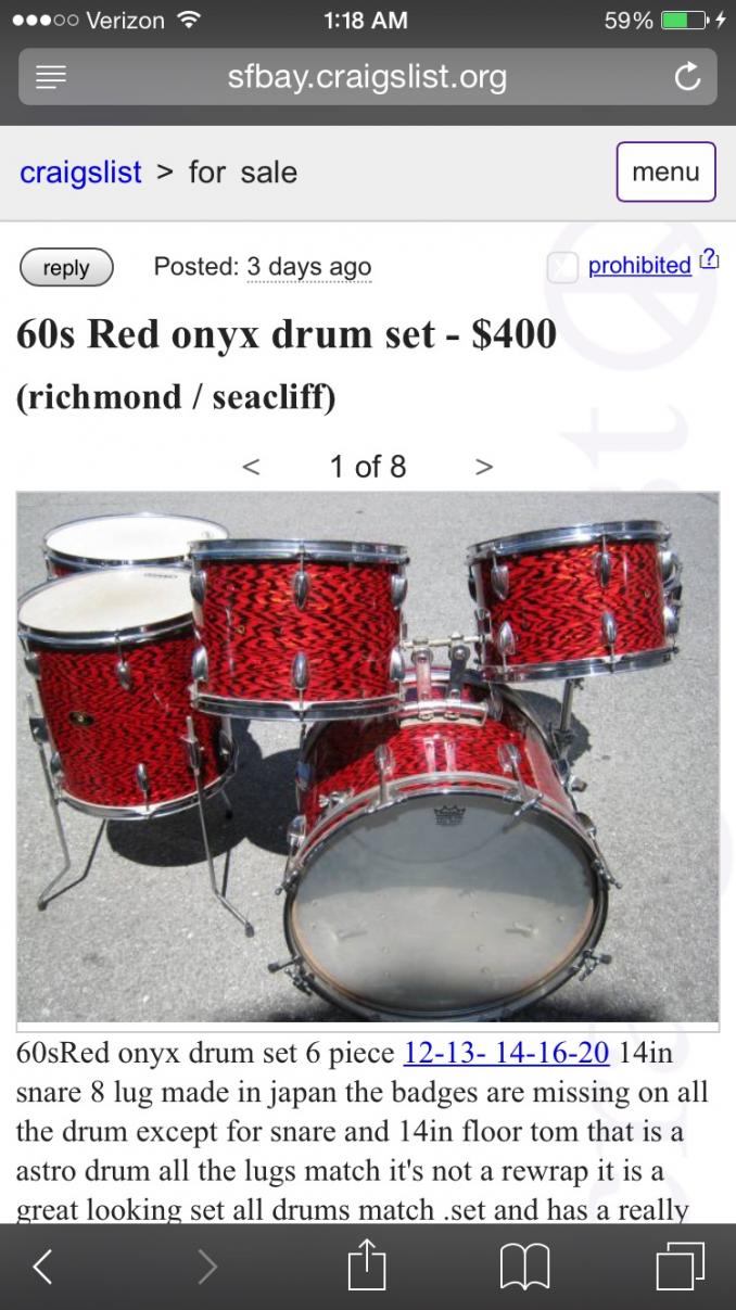 Thanks for the info everyone!Still debating if I want to pop on this or not....I have NEVER seen a big name vintage kit for less than $900 (in quite poor shape). The used drum market(and just about every other market) around here in NorCal is quite expensive.