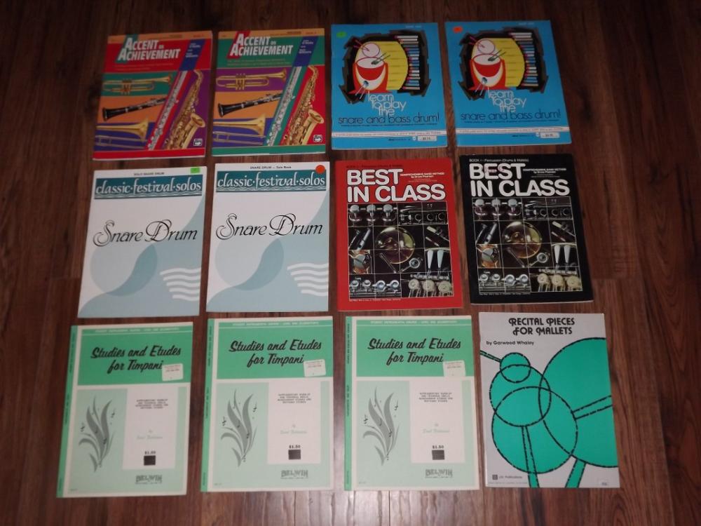 Pictured, are a bunch of instructional/exercise books and magazines in good to excellent condition...They definitely have a lot of life left in them...They are not perfect, but, they will do the job...