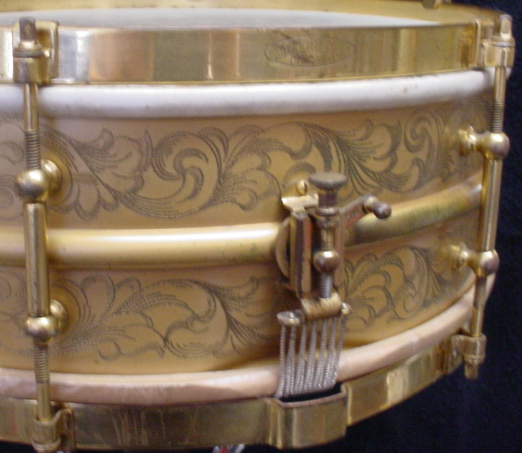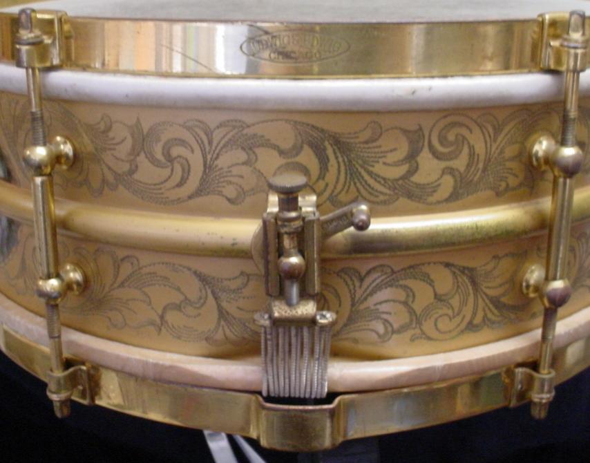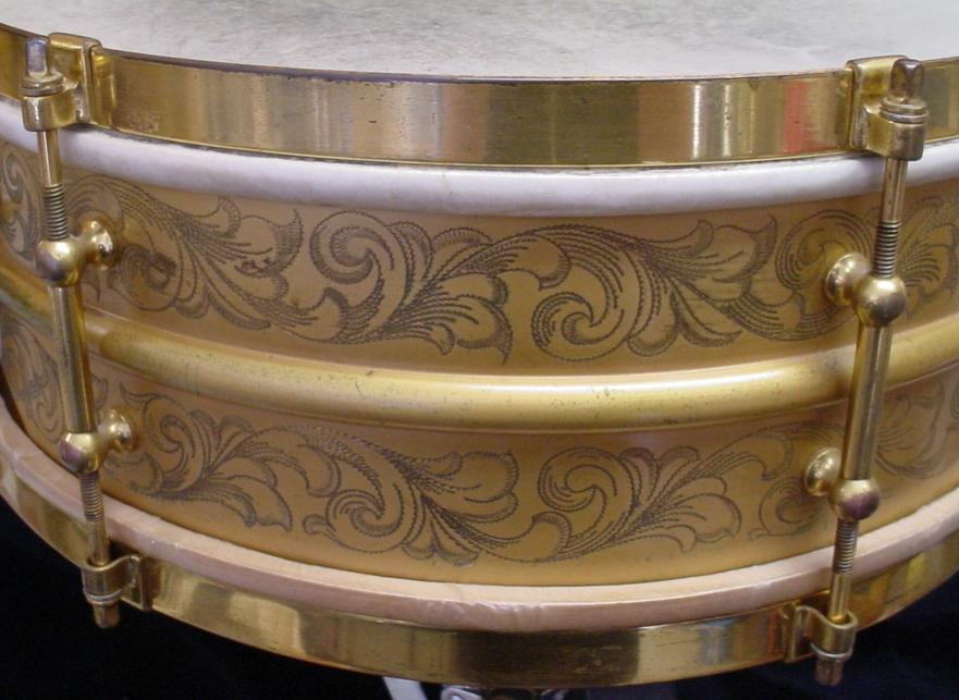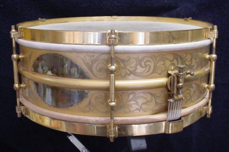 [B]1919-21 LUDWIG & LUDWIG 5 x 14 ENGRAVED/GOLD PLATED TRIUMPHAL MODEL[/B]