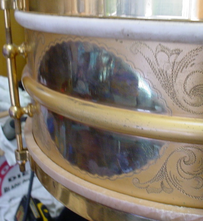 The story behind the purchase of this drum took a few turns for the worse before I was able to get involved. This drum was listed on EBay in the early 2000s. There were a number of bids, a lot of interest and the drum was reaching a pretty good price. All of a sudden a number of bidders withdrew their bids because someone had posted to the seller that his drum was a “6-lug” drum. Well, that was a true statement as the photos clearly showed that the drum was indeed a 6-lug snare drum. I guess the bidders thought that this drum was or should have been an 8 or 10 lug drum so the reverse frenzy resulted in all of the bidders retracting their bids...or...getting buyer’s remorse at the current price it was at? The simple answer is that at the time this snare drum was made Ludwig was only making 6-lug snare drums. The seller was very upset and ended the auction. This was at a time when it was very easy to contact an EBay seller via phone so I called the seller, validated him and his correct 6-lug snare drum was able to do the deal without involving anyone except me and the seller.