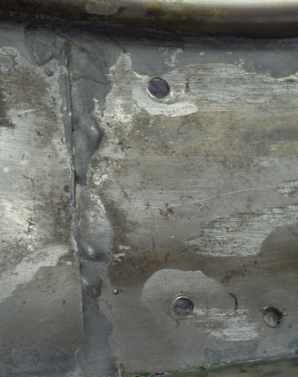 This snare drum started out as a 5 x 14 nos shell. The following is something that I have never seen before. The shell is drilled for 12 lugs, the c-c spacing is 2 1/8” (1/8” wider than the 2” c-c that L & L used for their 5 x 14 tube lug models). Now imagine a 5” nob shell that has had the middle cut out and the two remaining pieces including the bearing edges are rolled over both sides of the original 5 x 14 steel shell and then soldered on the inside and outside. I’m not making this stuff up as the photos will prove. The bearing edges and crimped snare beds are the same as we see on normal 1920s-30s L & L brass snare drums. There is an air hole grommet. I decided to leave the shell rustic, it just felt right on this unique snare drum and it kept with the “Rat” drum theme.