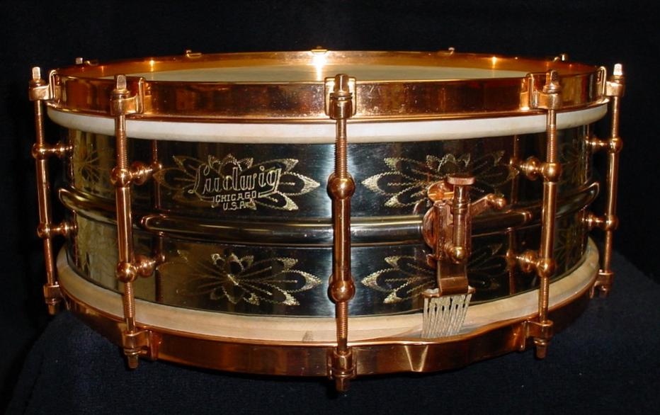 1926-27 LUDWIG & LUDWIG 5 x 14 10 LUG 12 PT. FLORAL ENGRAVED DeLUXE ALL-AROUND MODEL (cat. no. 1)