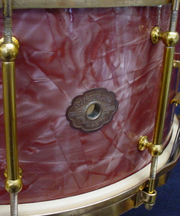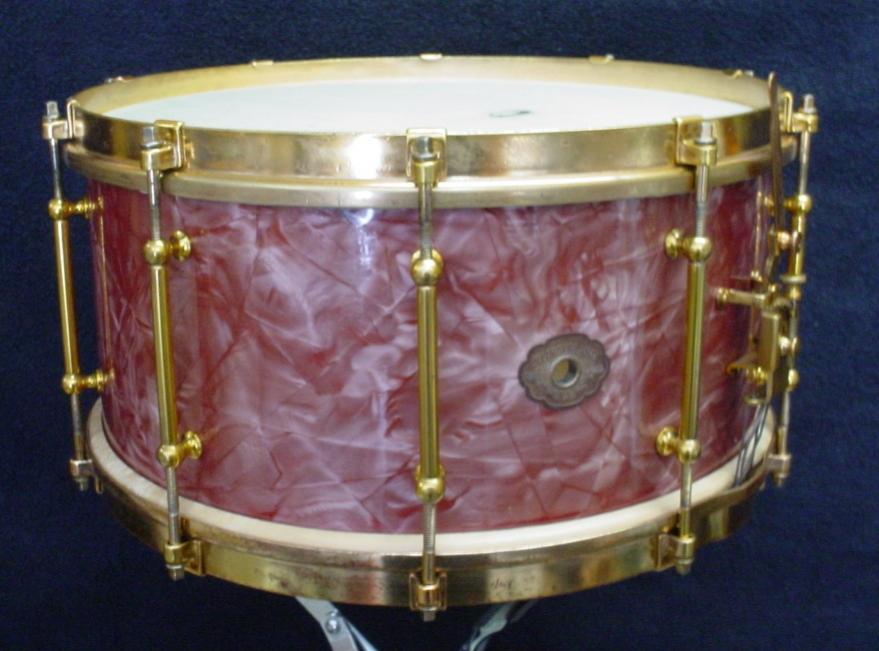 *1929 SLINGERLAND 6.5 x 14 ROSE PEARL/ARTGOLD TONE FLANGE ARTIST MODEL