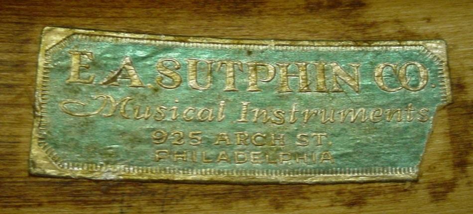 The Rose Pearl wrap was in great shape. There was a small repair that had been done at some point but it looked like a crack in the wrap that was expertly glued back to normal. I cleaned and polished the finish and was very happy with the outcome. The solid maple shell is in-round with no re-ring separation. The interior was a bit soiled so a little lemon oil spruced things up. The cloud badge is in good shape with a tight grommet. There is an artifact from yesteryear on the interior, a sticker from E. A. Sutphin Co. Musical Instruments Philadelphia.