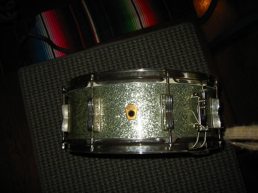 Hi everyone here is a WFL snare I picked up a couple of months ago. I also picked up a 3x13 piccolo snare with a keystone badge. Ive been playing both of these snares with my jazzette. Ive also found some Ludwig flat base stands and a WFL flat base hi hat stand to go with the jazzette. All i need is some original Ludwig floor tom legs so let me know if anyone has a set for sale. The cymbals are 50's A Zildjian thin hi hats and 18 inch thin crash. The ride cymbal is a 60's A zildjian 20 inch rith rivets.