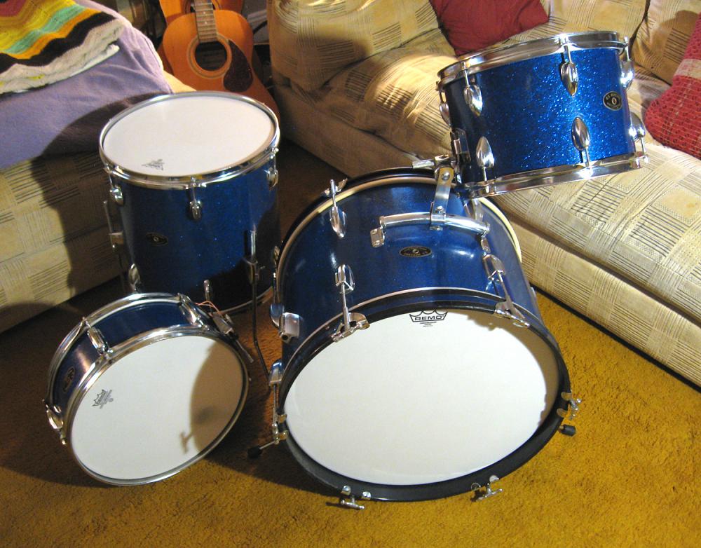 Only thing I need to do is get a new inlay for the kick hoop. It should be a darkish blue sparkle, as often seen on MIJ kits of the 60s/early 70s.