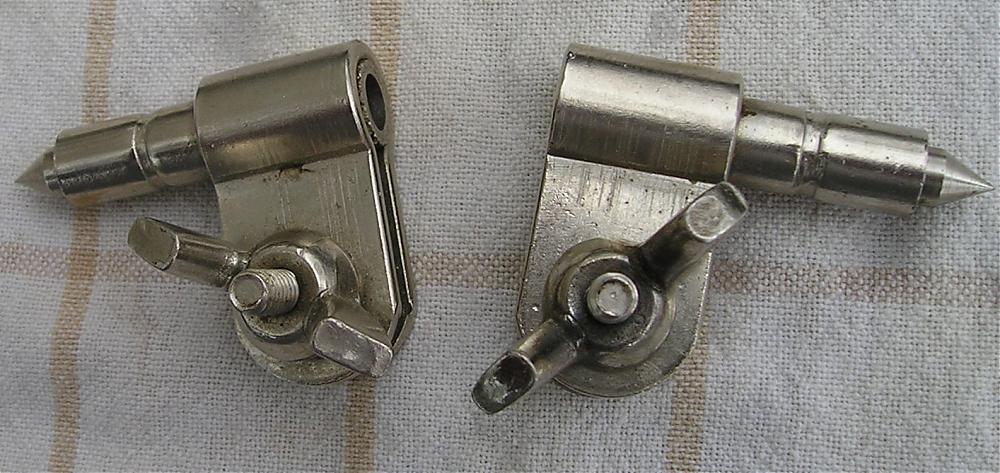 These are new old stock nickel plated bass drum spur parts from some American manufacturer. They were never used and like new. Photos may look like rust but its just dirt and grease. These are probably very old.