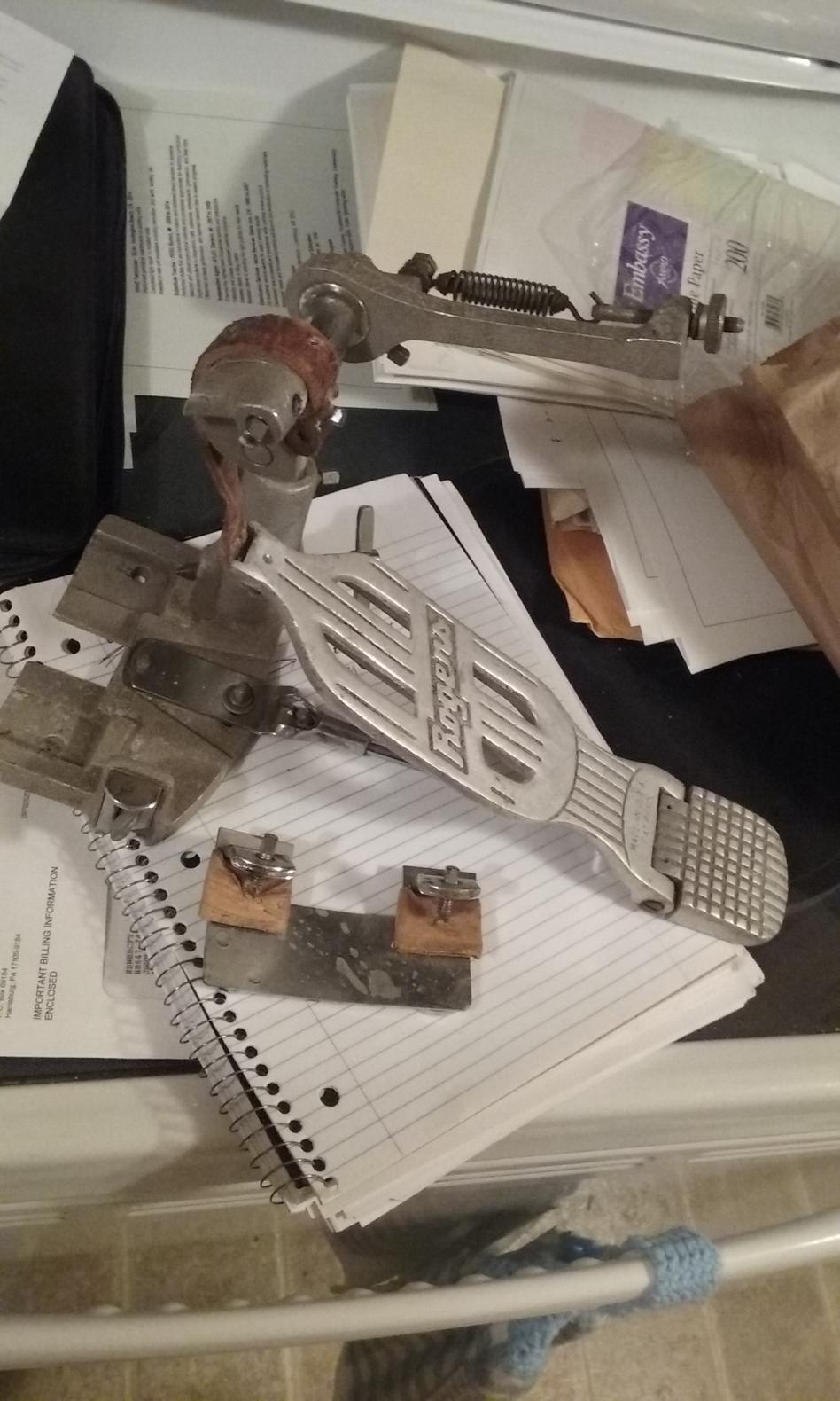 2) Rogers Swivo pedal - yes, has the mounting clip. The clip is missing some of the knobbies that fit into the frame of the pedal. No beater.--------------------- $50 SOLD