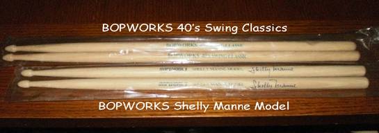2nd Pair - Shelly Manne Model. Now this, is an 'old-school' jazz stick! Thin, light, shorter than the 40's Swing model by 1/2" and the acorn tip makes the cymbals sing and rhythms sound very articulate. You can hear every tic with just the right amount of wash. I think the stick is just a little too light-weight though. Gave me some control problems at first, but I did get used to the reduced weight quickly. Soft sticks on the drums. A true, small room, jazz combo set of sticks. When you want good definition without a lot of volume, this is a great set of sticks to consider/try out.