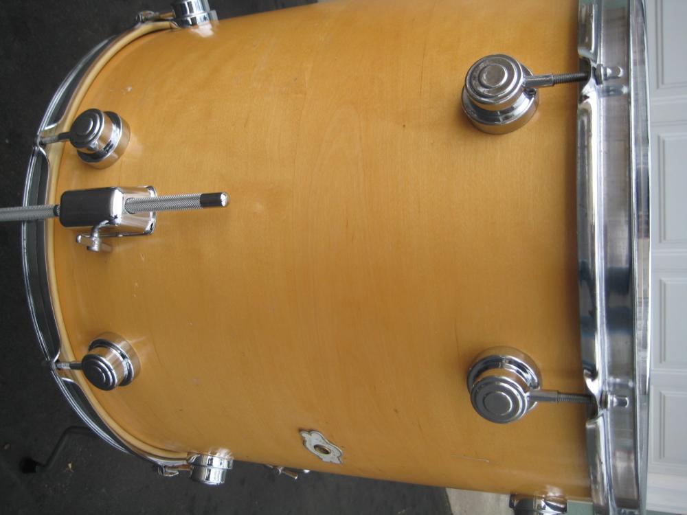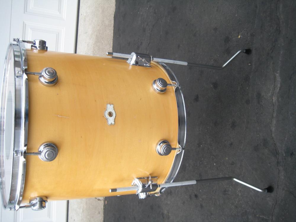 Good condition 16x16 Camco LA floor tom in natural maple finish. None original legs but brackets are original, Camco, No fat tension washers and muffler is missing. Some minor corrosion on the hoops. Has some nicks and scuffs but still looks great and sounds fantastic.