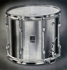 Me and my buddy pulled this snare drum out of his dads attic and i'm trying to figure out what the hell it is. This pics of the snare are a little deceptive because i don't believe that the hardware is original to the drum. Hers the general stats before i get into some points. Its a 10 lug marching snare, i believe its a 6 ply (i could be wrong), its 12" D x 15" W, and has a natural finish (could have previously had a shell wrap.)