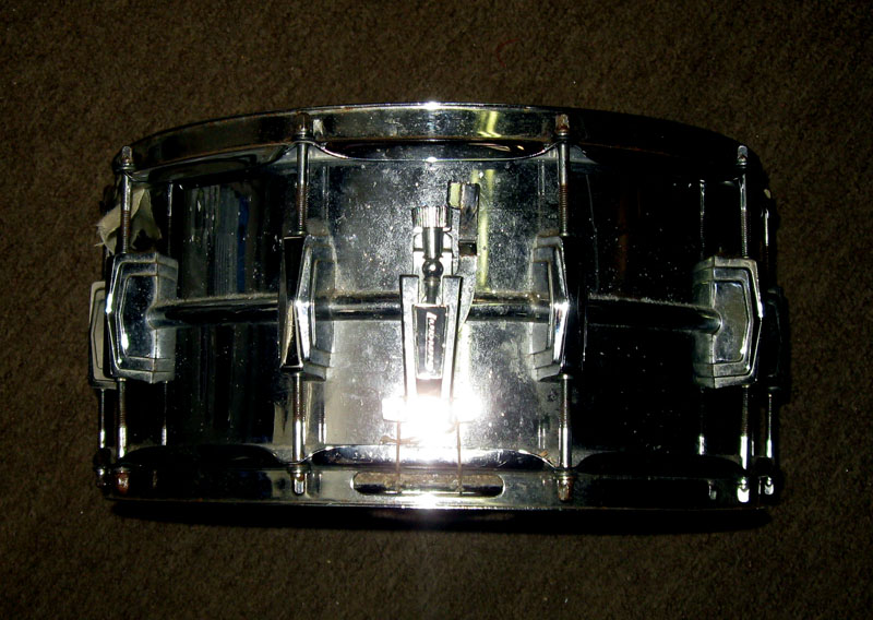 Somewhere along the line, I think I swapped this one for the 1965 snare that came with my set. I can understand why, it sounds much better. But I have no clue what the age is? Looks like a 6 1/2, 10 lug and on the original Ludwig stand, it's too high. Keep on Pl