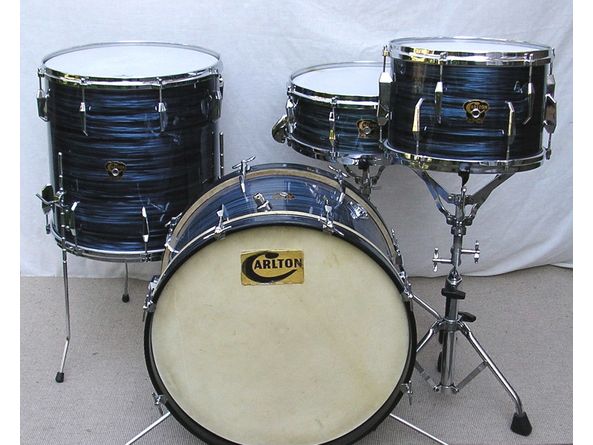 CARLTON four-piece shell pack circa early 1960s in original blue wave finish, comprising 12 x 8in rack tom, 16 x 16in floor tom , 20 x 12in bass drum and 14 x 5in snare drum.
