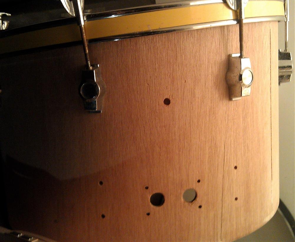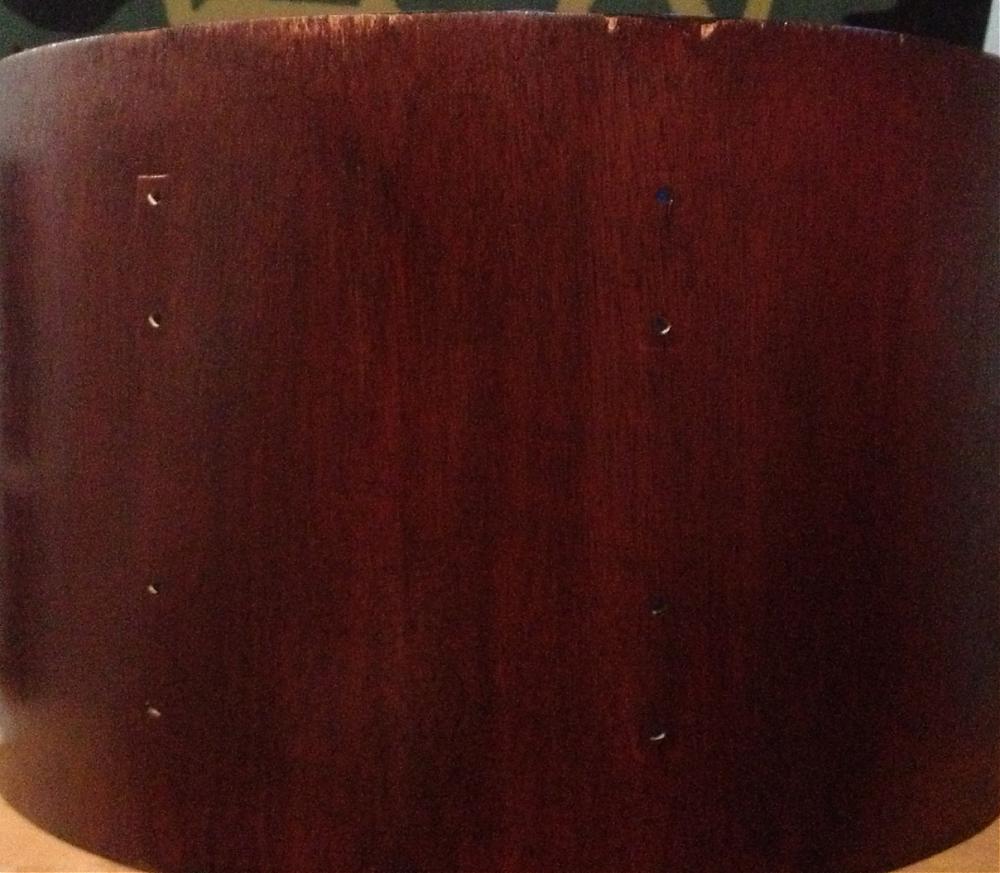 Since the drums were already half way stripped I decided to fill all of the mount holes on the toms and bd and I stained them with polyshades stain. I'm still in debate on if the drums will sound better if I put something on the inside shells. I heard these drums are 70s made by pearl and are decent shells.